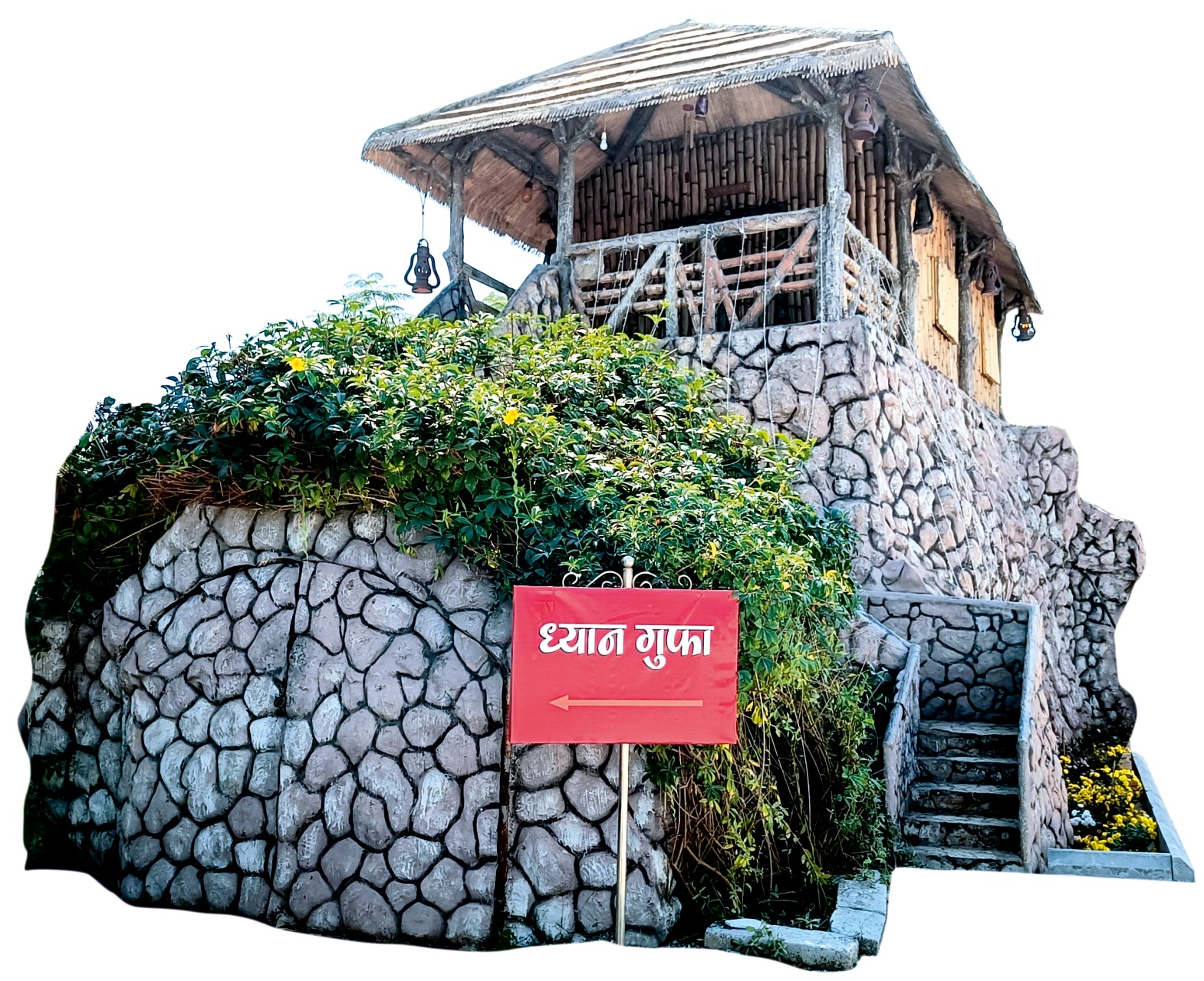 * इस कुटीर को वास्तु शिल्प द्वारा पाषाण से निर्मित किया है।